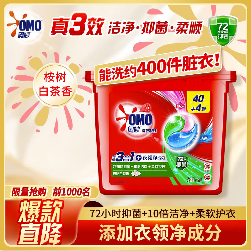 奥妙(OMO)三合一洗衣凝珠桉树香 44颗 浓缩洗衣液 持久留香 除菌除螨