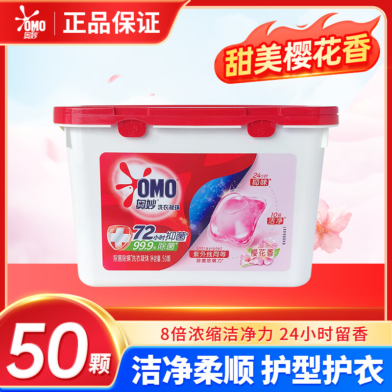 奥妙奥妙洗衣凝珠樱花留香白茶除菌除螨浓缩内衣洗衣液深层洁净家庭装 甜美樱花香50颗