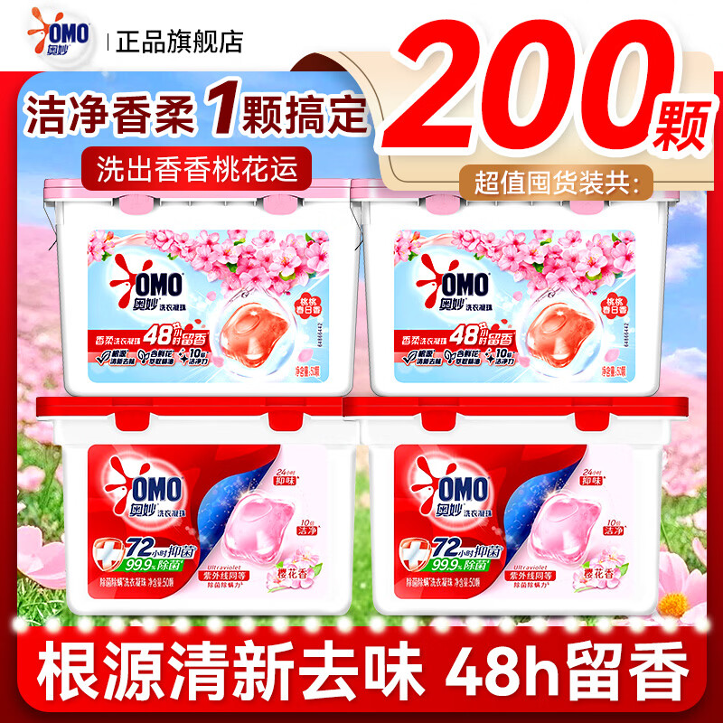 奥妙(OMO)洗衣凝珠洗衣液持久留香酵素三合一家用囤货装学生宿舍正品旗舰店 【共200颗】樱花100颗+白桃100颗