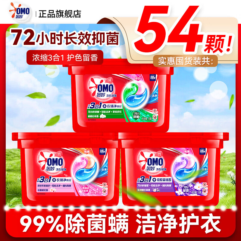 奥妙(OMO)三合一洗衣凝珠54颗(18*3盒) 桉树香 长效抑菌留香
