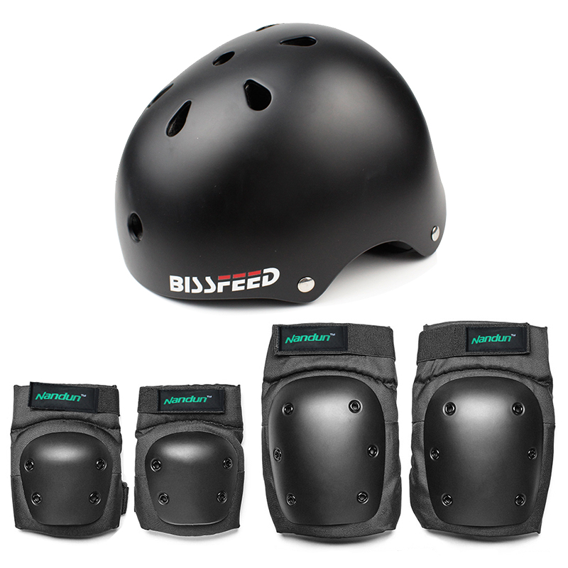 BISSFEED专业滑板护具大人男女生轮滑溜冰头盔护膝护肘护手腕屁股滑雪装备 5件套 护膝护肘+头盔 L码【120-160斤】