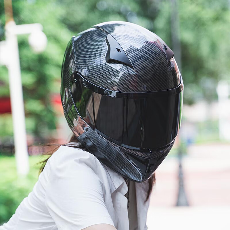 摩多汇合(MODOCONFLUENCE)摩托车头盔女生巡航赛机车蓝牙四季3C认证大尾翼高颜值机车全盔男 黑碳纤-茶色镜片 M