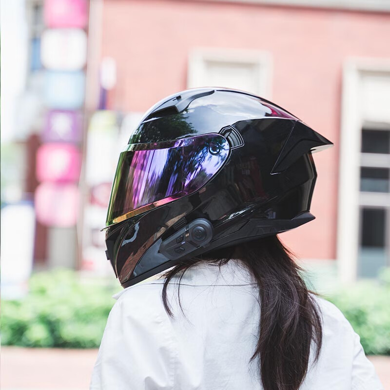 摩多汇合(MODOCONFLUENCE)摩托车头盔女生巡航赛机车蓝牙四季3C认证大尾翼高颜值机车全盔男 亮光黑-紫红镜片 L