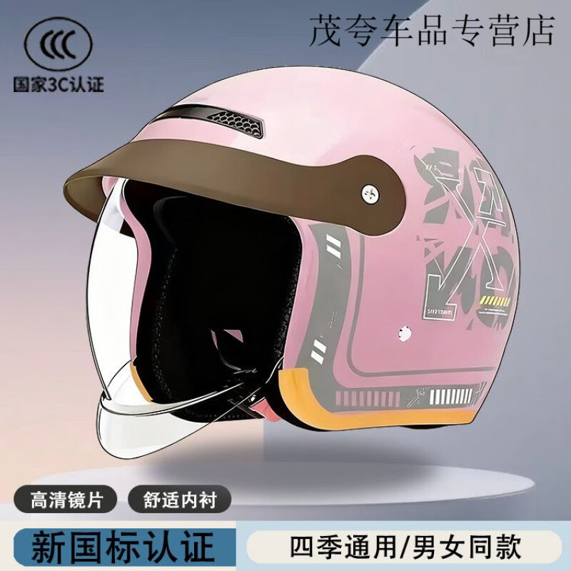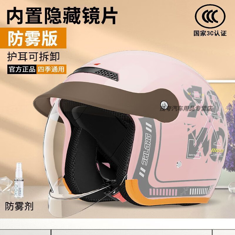 澳颜莱头盔冬季防冻保暖 新国标3C电动车头盔女生复古安全四季通用冬季保暖隐藏式镜片均码 薄藤粉【秋冬保暖】内推镜片