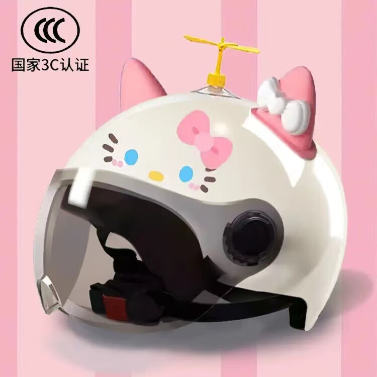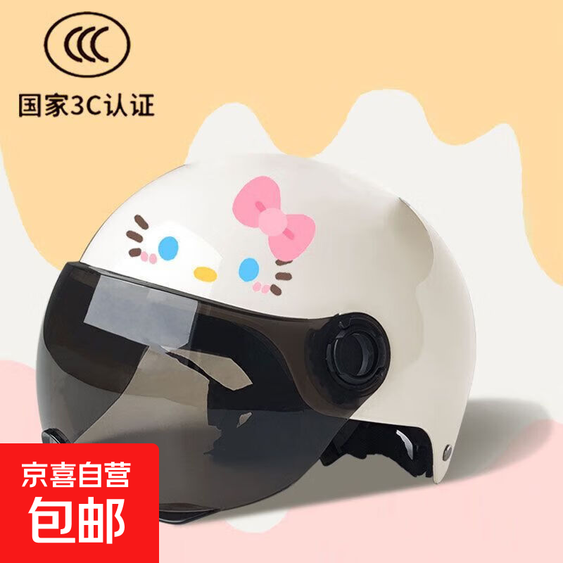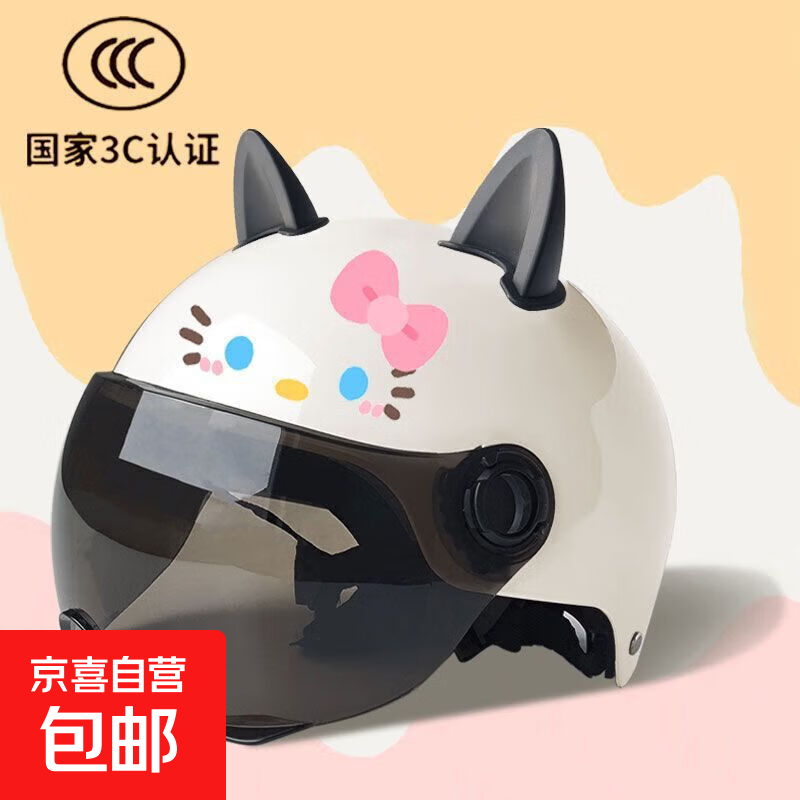 新国标电动车头盔成人女生3c认证四季通用儿童安全帽电瓶摩托车 KT猫前脸防晒 均码