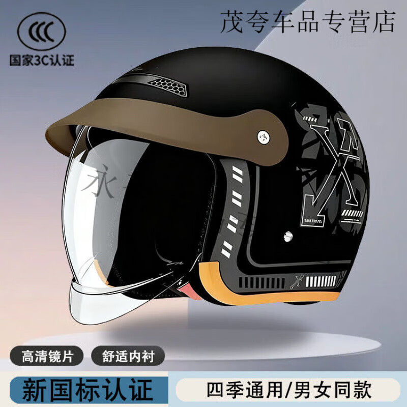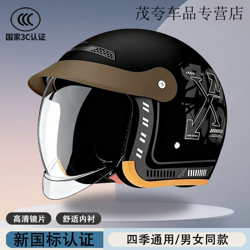 澳颜莱头盔冬季防冻保暖 新国标3C电动车头盔女生复古安全四季通用冬季 黑[秋冬保暖]内推镜片