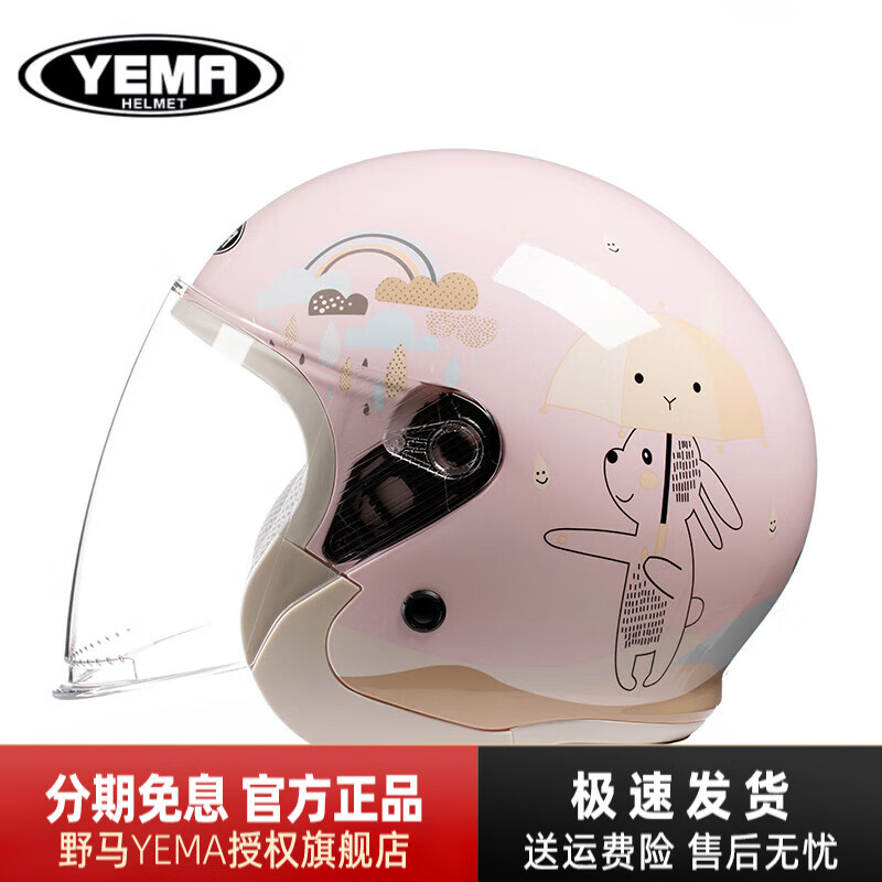 野马3C认证冬季电动车头盔学生轻便男女生四季便携式电瓶车安全帽 633樱桃粉兔 均码