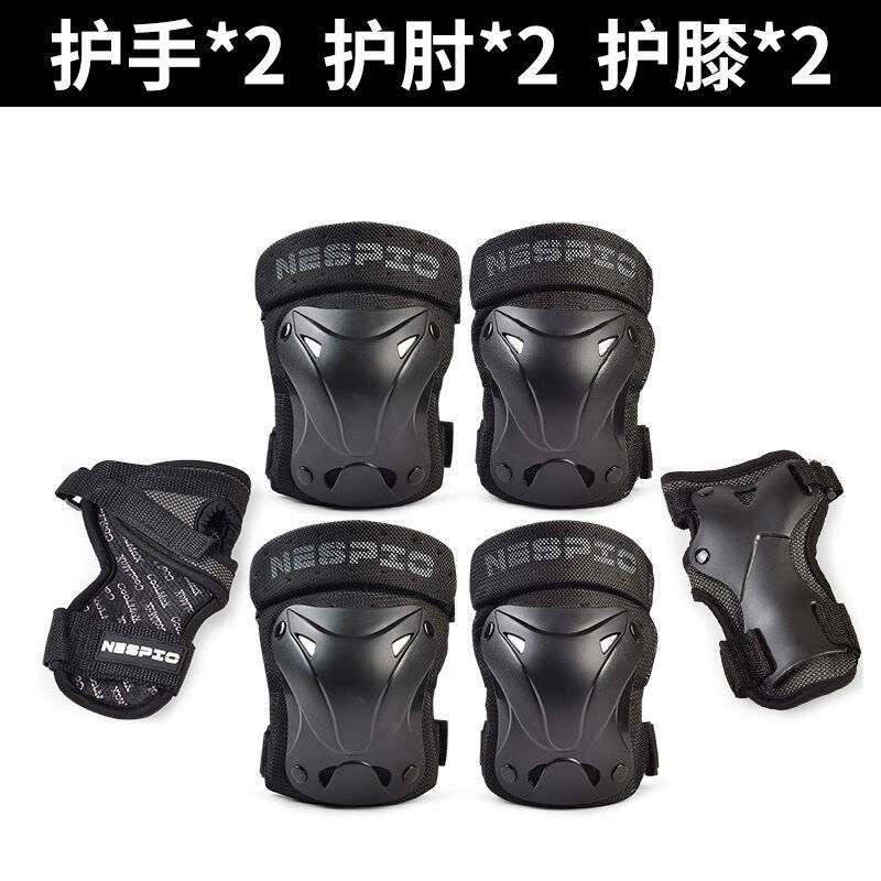 滑板护具女生成人防护保护装备专业轮滑儿童滑冰男溜冰护肘护膝车 S码(35-80斤) 黑色丨护具六件套+头盔+单肩包