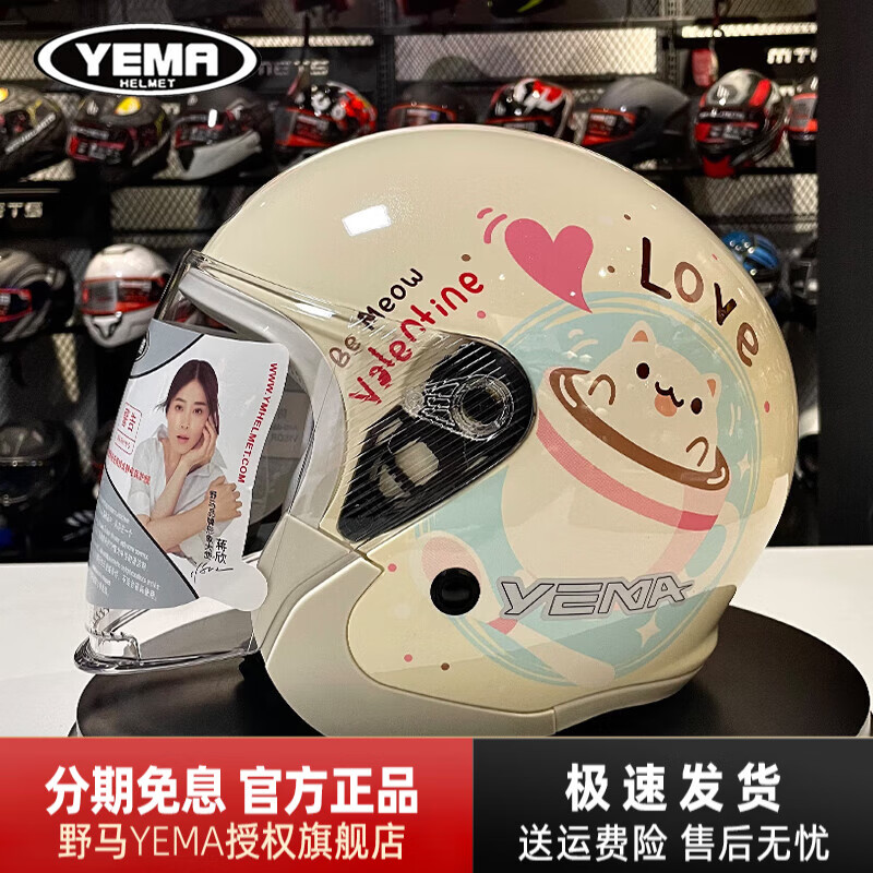 野马3C认证冬季电动车头盔学生轻便男女生四季便携式电瓶车安全帽 633亮象牙白星球杯 均码