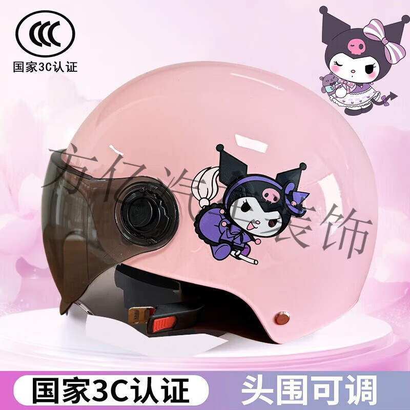 工马库洛米头盔男女士3C认证电动车高颜值四季通用女生学生儿童安全帽 粉色库洛米B防晒