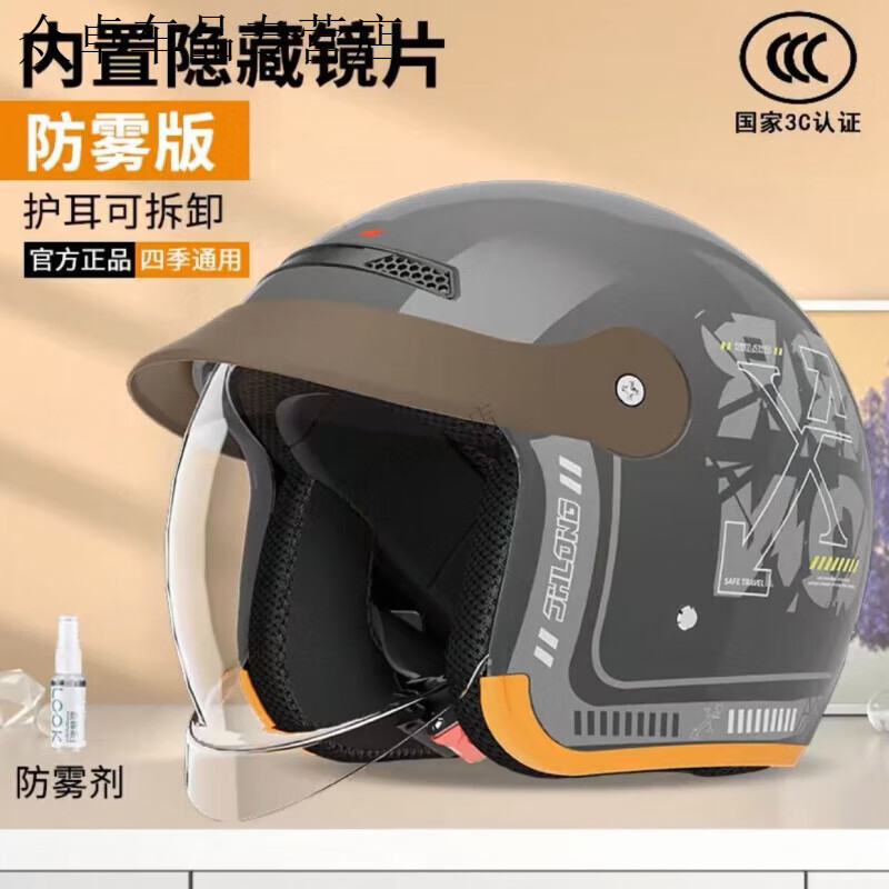思泰登高高清防雾冬季头盔 3C电动车头盔新国标女生安全四季通用冬季保暖隐藏式镜片均码 防雾-雅黑【防雨帽檐】内推镜片