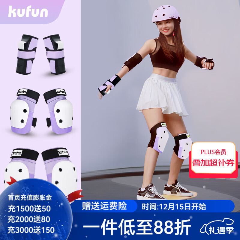 酷峰轮滑护具滑板专业护臀全套装儿童成人女生滑冰鞋头盔护膝保护装备 6件套 奶油紫 S(体重28-70斤)