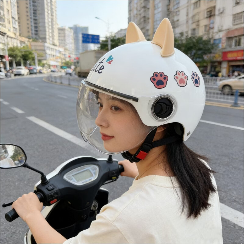 淮夏头盔电动车头盔男女生四季通用3C认证安全帽高颜值可爱电瓶车女士 单镜片(只适用本店头盔) 均码