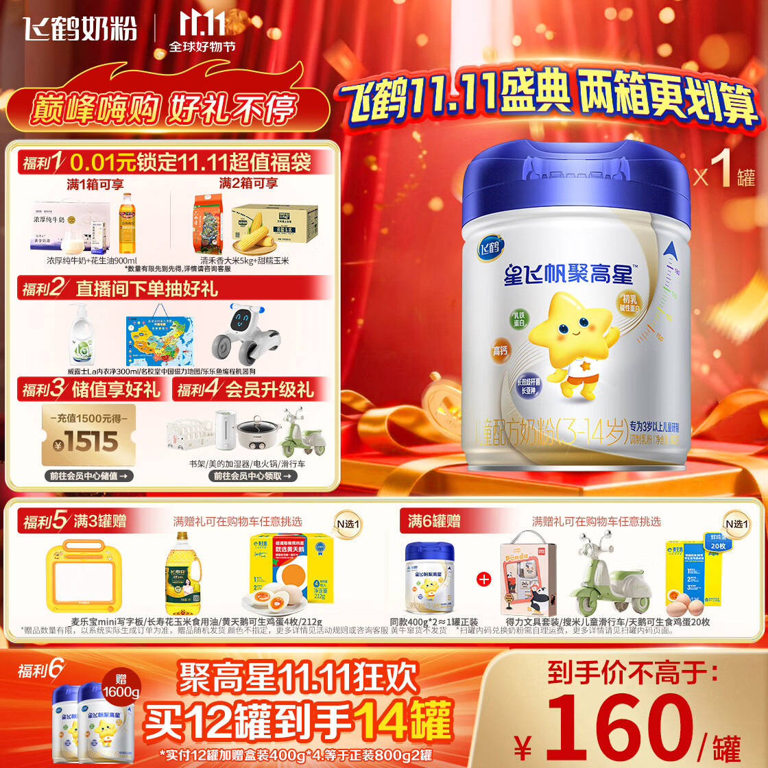 飞鹤星飞帆聚高星 乳铁蛋白 高钙CBP 长高4段(3-14岁)儿童奶粉800g