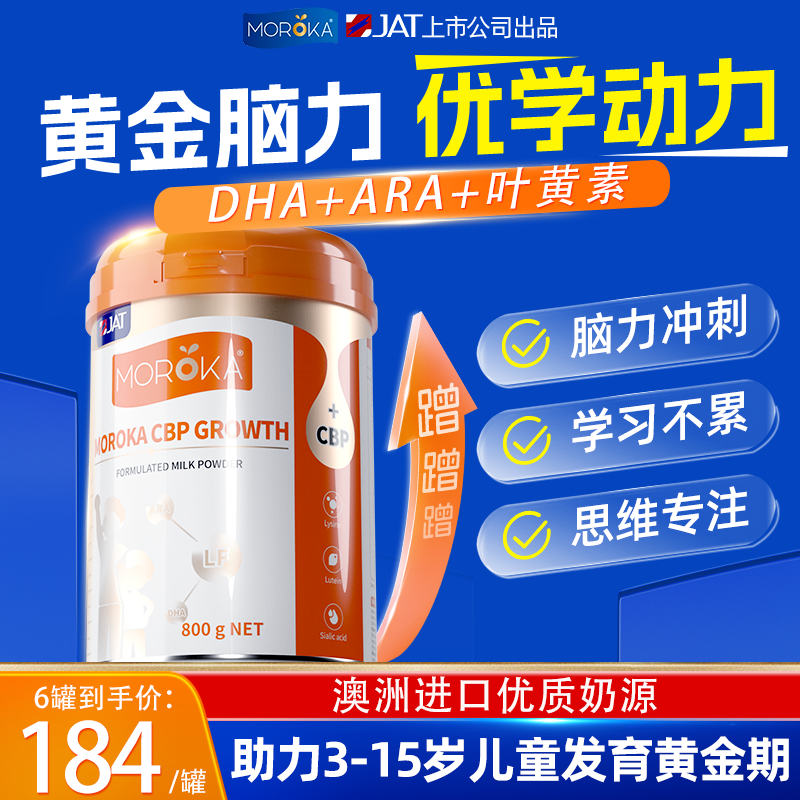 莫兰卡(MOROKA)儿童成长奶粉3-6-14岁成长高钙补钙补脑DHA赖氨酸学生奶粉800g