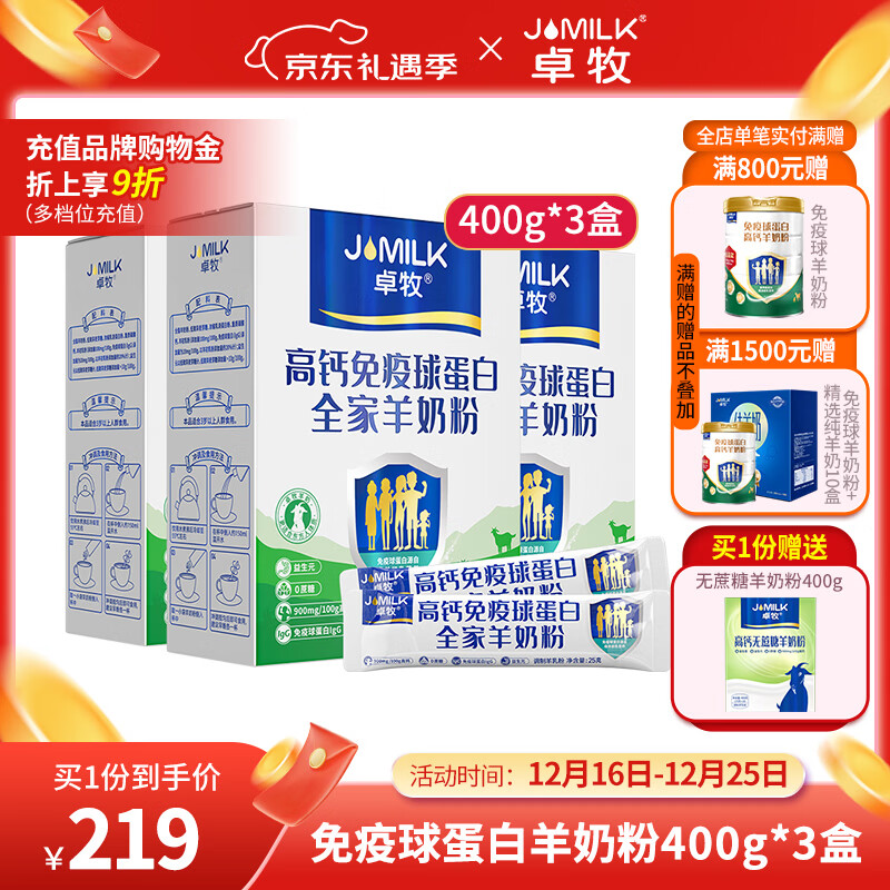 卓牧(JOMILK)羊奶粉免疫球蛋白中老年羊奶粉羊初乳成人羊奶粉老年奶粉 羊初乳羊奶粉400g*3盒