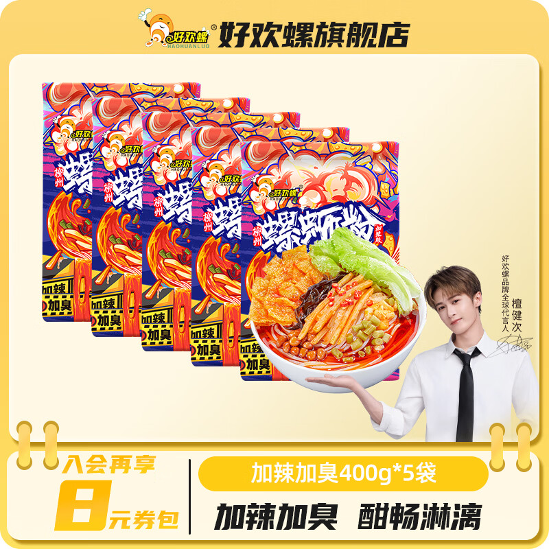 好欢螺加辣加臭螺蛳粉酸辣广西柳州特产螺蛳粉袋装宵夜速食米线方便面 加辣加臭400g*5袋