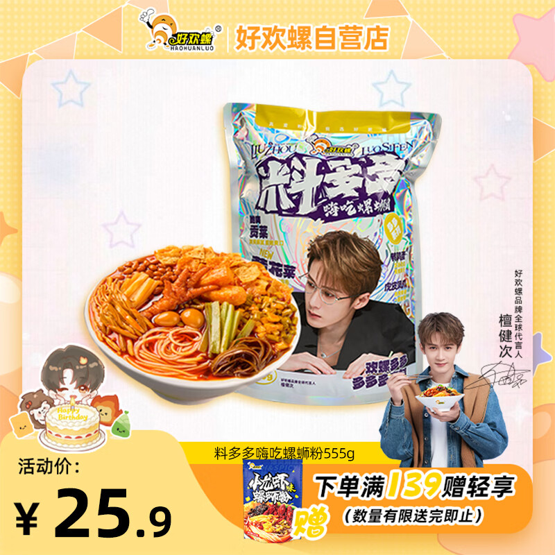 好欢螺【檀健次同款】料多多嗨吃螺蛳粉555g加量配菜酸辣方便速食米粉