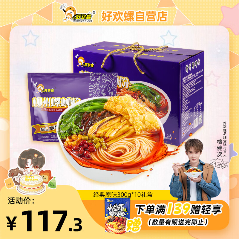 好欢螺螺蛳粉广西柳州特产 酸辣米粉速食经典原味300g*10袋礼盒装送礼