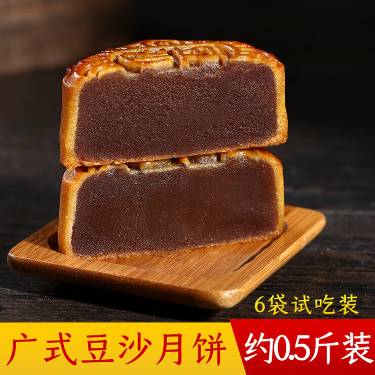 好溢美豆沙月饼老式月饼广式蛋黄月饼豆沙莲蓉月饼中秋月饼馅饼传统糕点 豆沙味(100g*6枚)新鲜日期