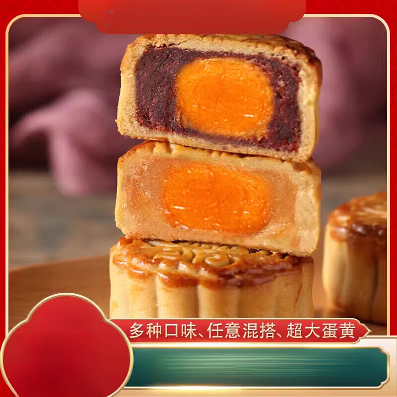 好溢美月饼广式散装多口味莲蓉豆沙蛋黄黑芝麻五仁糕点传统送礼批发团购 100g4种口味混合12个(莲蛋+豆蛋+黑芝麻1
