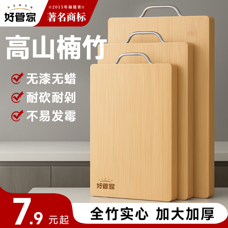 好管家菜板切菜板抗菌防霉家用砧板厨房案板实木占板刀板竹水果板 抗菌防霉楠竹38*28*1.8cm