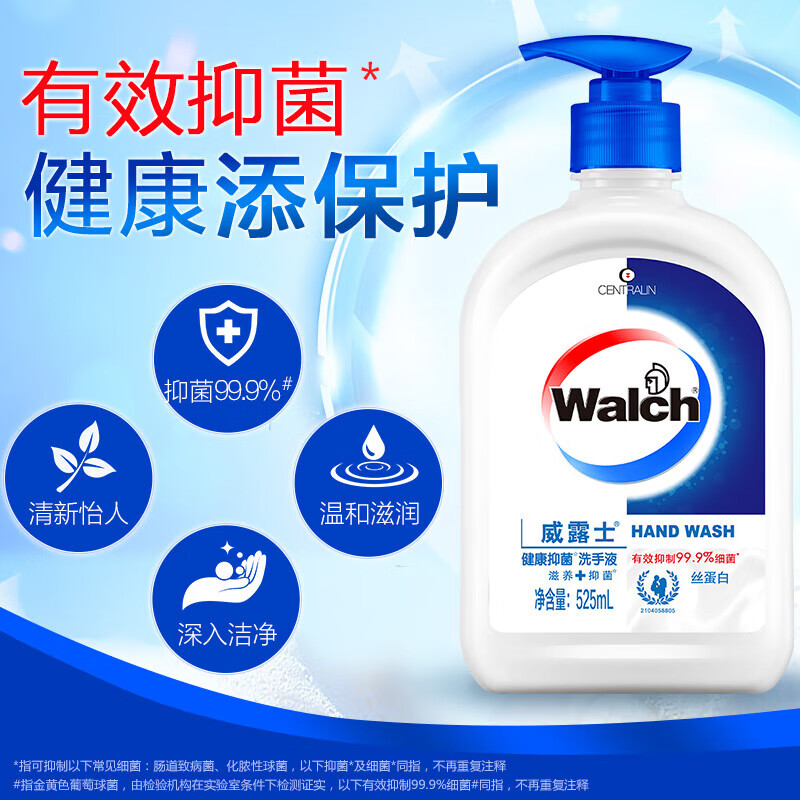 Walch威露士健康抑菌丝蛋白洗手液家庭装家用泡沫丰富瓶装成人学生 丝蛋白525ml