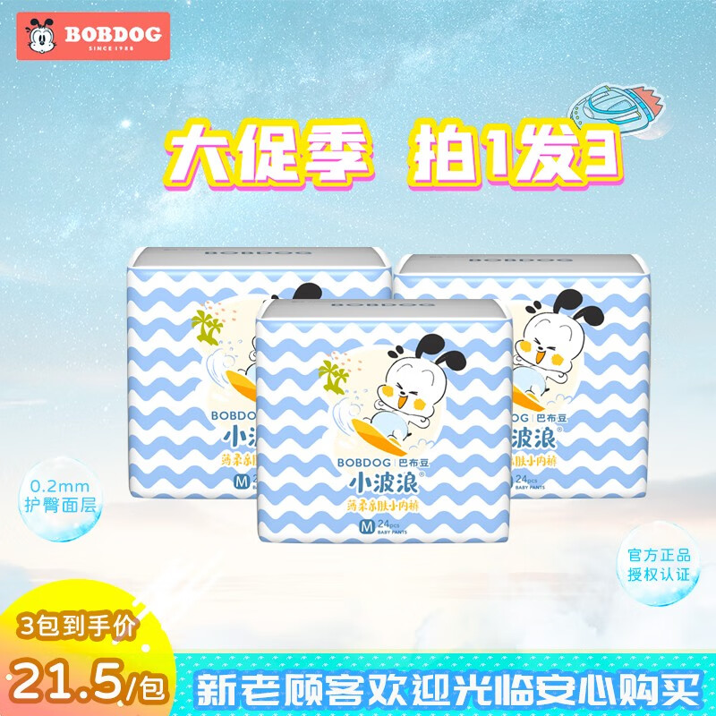 巴布豆拉拉裤小波浪超柔亲肤婴儿小内裤男女宝宝通用尿不湿 拉拉裤M3包共72片