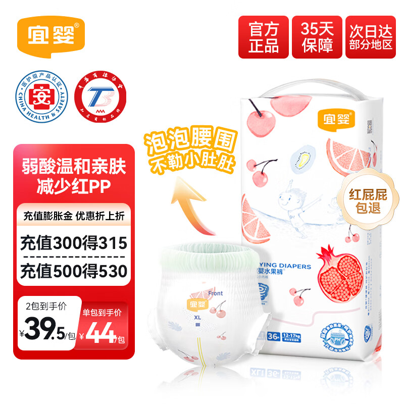 宜婴弱酸水果拉拉裤 柔软干爽小内裤宝宝学步裤婴儿超薄透气尿不湿 拉拉裤XL36片【12-17kg】