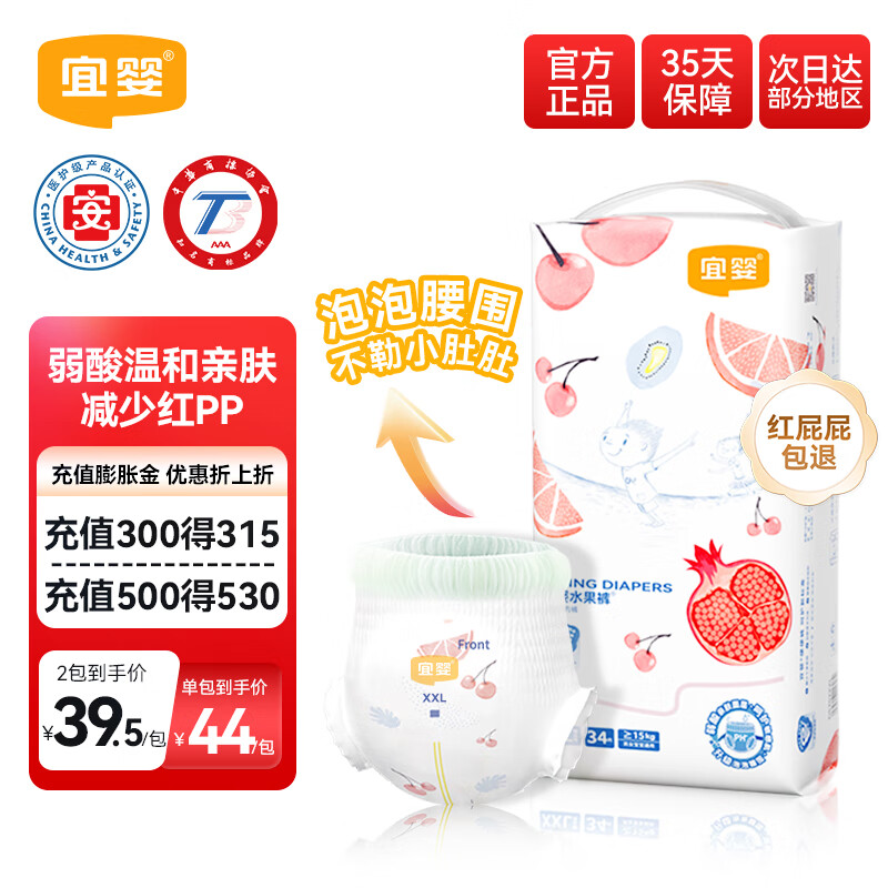 宜婴弱酸水果拉拉裤 柔软干爽小内裤宝宝学步裤婴儿超薄透气尿不湿 拉拉裤XXL34片【15kg以上】