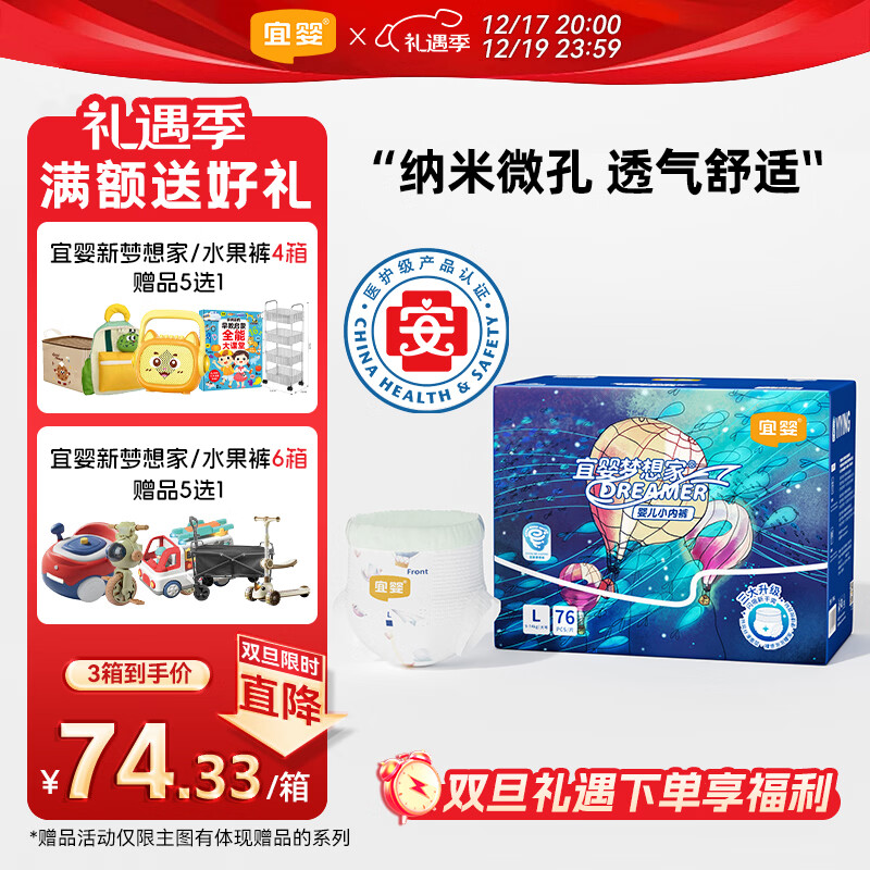 宜婴新梦想家全包臀婴儿小内裤箱装L76片拉拉裤超薄透气不闷尿裤