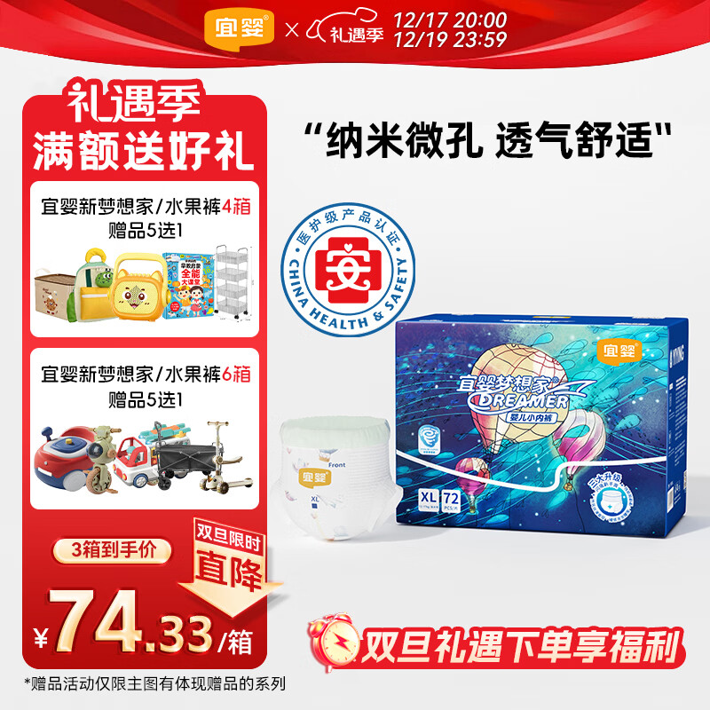 宜婴新梦想家全包臀婴儿小内裤箱装XL72片超薄透气拉拉裤