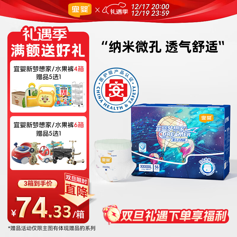 宜婴 新梦想家全包臀婴儿小内裤 箱装 XXXXXL56片拉拉裤超薄透气尿裤