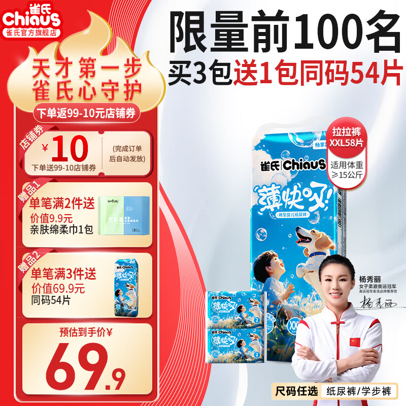 雀氏(Chiaus)拉拉裤薄快吸学步裤医护级国产尿不湿婴儿超薄透气成长裤小内裤式 拉拉裤XXL58片【15kg以上】