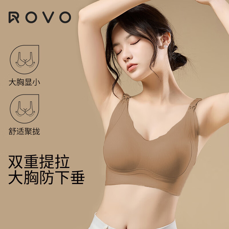 ROVO哺乳内衣聚拢提拉大胸显小防下垂收副乳怀孕期喂奶专用孕妇文胸罩 咖啡 XL