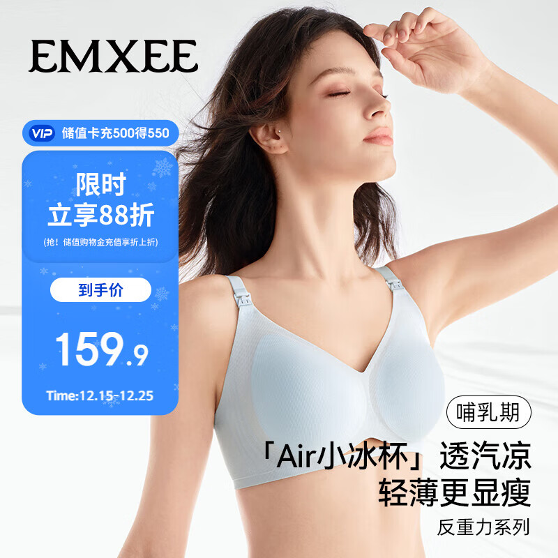 嫚熙(EMXEE)反重力Air孕妇哺乳内衣冰杯夏薄款聚拢孕期产后喂奶专用文胸 蓝XL