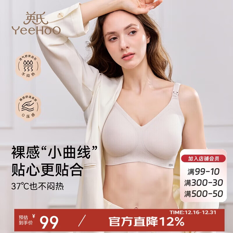 嫚熙(EMXEE)孕妇产后哺乳文胸 深V水滴喂奶哺乳内衣防下垂 凝脂肤 M
