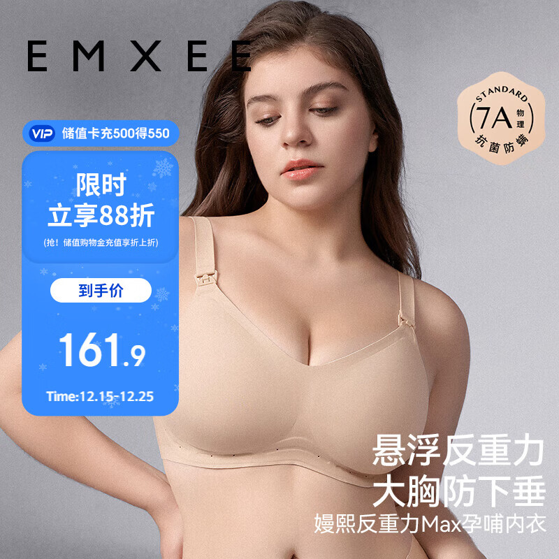 嫚熙(EMXEE)悬浮反重力大胸专用孕妇哺乳内衣聚拢防下垂孕期产后Max文胸 杏M