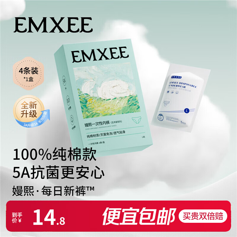 嫚熙(EMXEE)5A抗菌孕妇产妇一次性内裤旅游出差月子便携灭菌免洗纯棉内裤 1盒 XL(建议100-120斤)