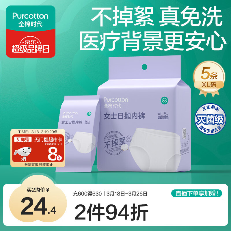 全棉时代一次性内裤女纯棉出差旅行便携孕妇月子免洗不掉絮灭菌 XL码5条