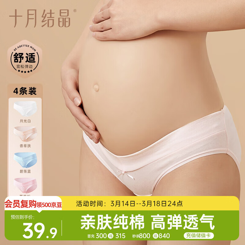十月结晶孕妇内裤低腰棉孕早中期孕晚期低腰孕产妇女托腹内裤4条装 L码