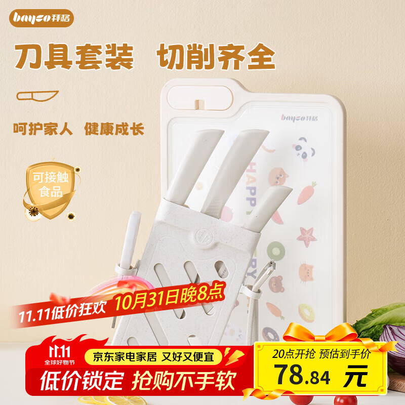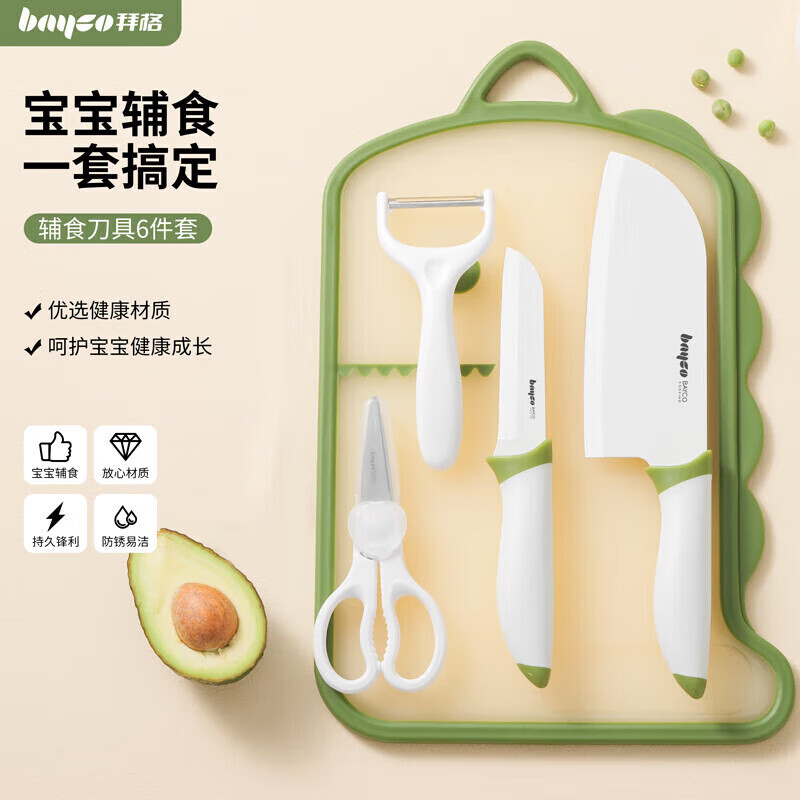 拜格(BAYCO)刀具菜刀套装切菜板家用婴儿宝宝辅食工具全套切水果刀TZ19313