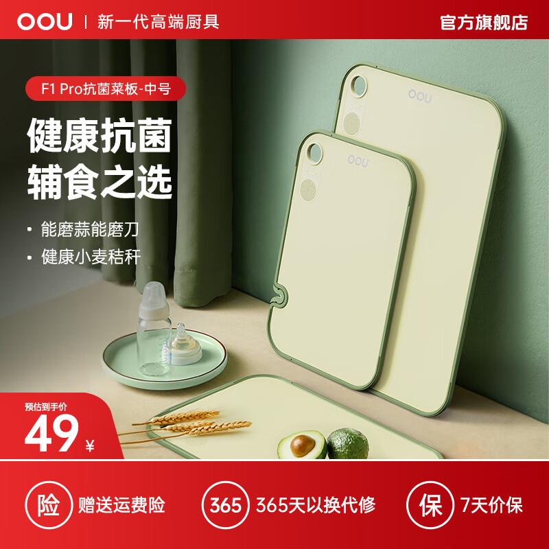 OOU菜板双面小麦秸秆抗菌防霉砧板 厨房案板家用宝宝婴儿辅食切菜板 抗菌率99%小麦秸秆双面菜板| 中号