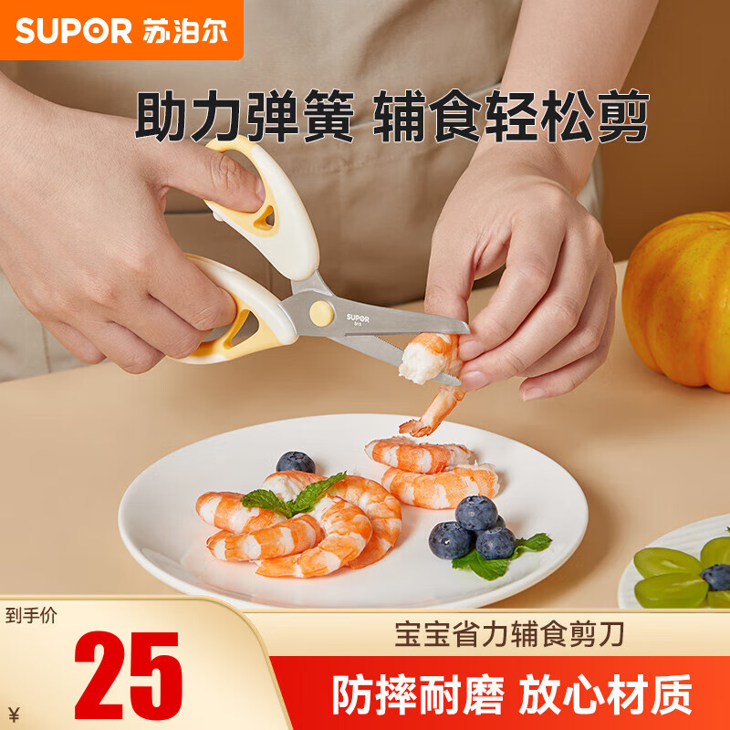 苏泊尔(SUPOR)菜板剪刀辅食工具婴儿用品宝宝砧板套装刀具套装抗菌刀座工具收纳 辅食剪刀【含刀头收纳盖】