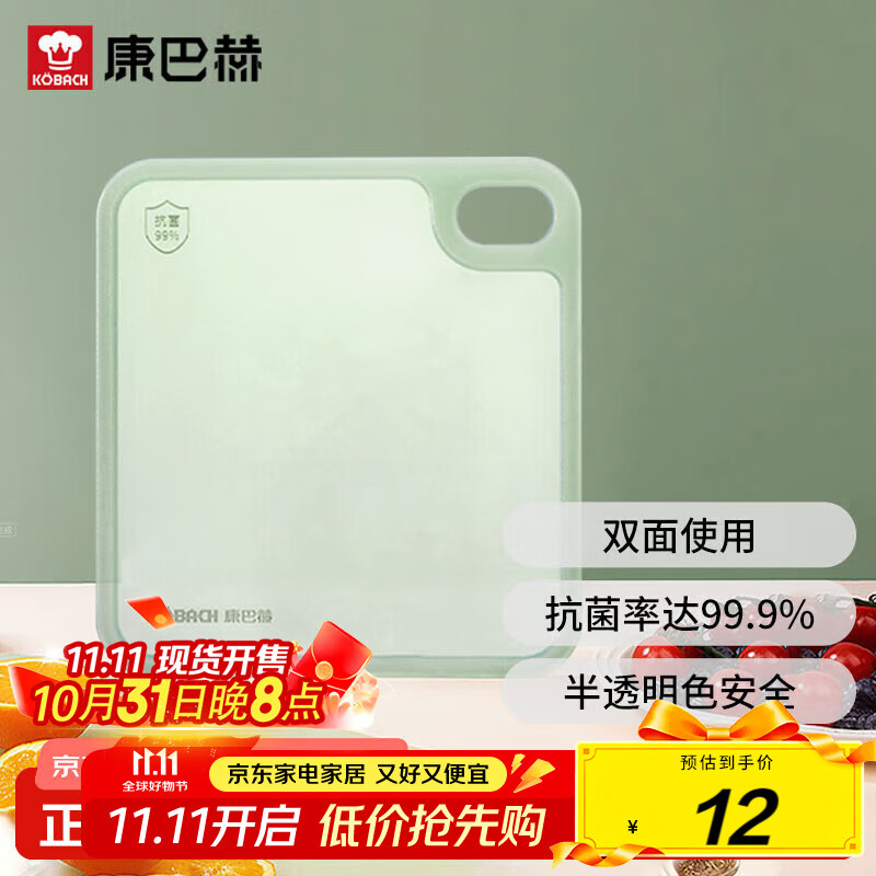 康巴赫抗菌水果辅食菜板双面可用果蔬分切易清洗带挂孔家用婴儿宝宝砧板