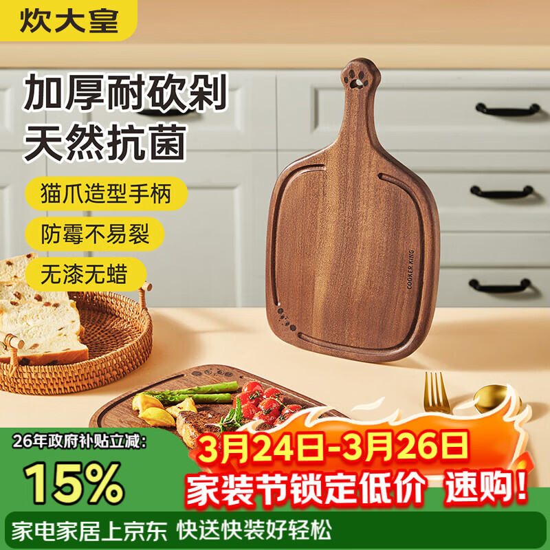 炊大皇乌檀木砧板 卡通梅花猫爪菜板婴儿辅食菜板39.4*22.4*2CM