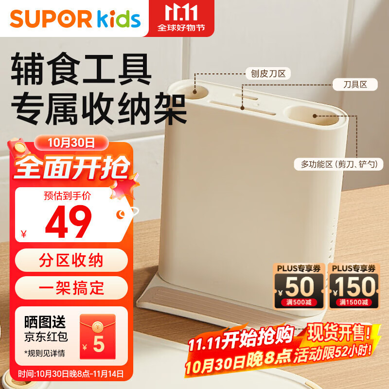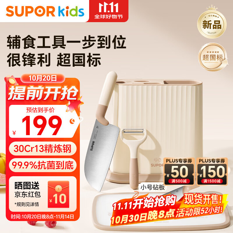 苏泊尔(SUPOR)辅食刀座宝宝工具儿童菜刀菜板剪刀套装收纳刀座 KEL001AE10