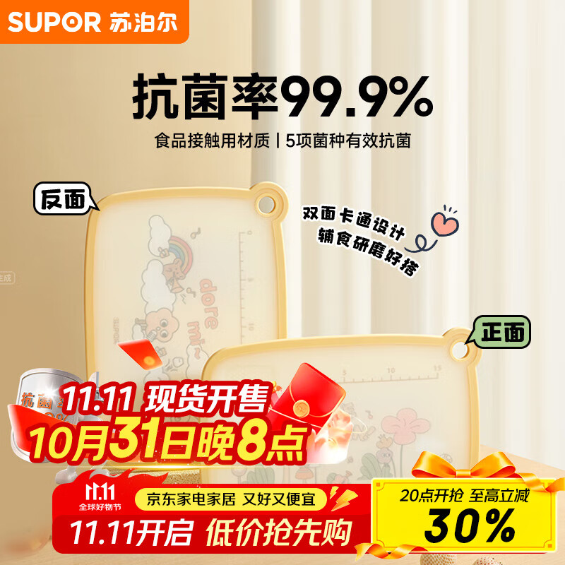 苏泊尔双面抗菌砧板菜板切水果砧板防霉迷你婴儿家用小菜板宝宝辅食专用