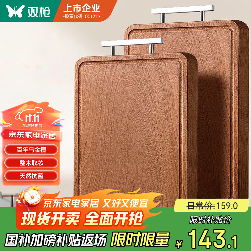 双枪乌檀木整木菜板实木抗菌防霉家用切菜板案板大号砧板 【金标抗菌-升级款】45*30*2.5