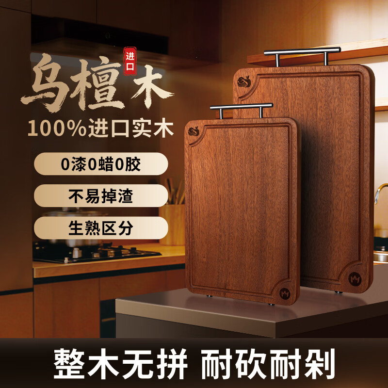 咚西乌檀木整木切菜板南非进口实木抗菌防霉双面案板厨具菜刀砧板耐砍 【把手款-乌檀木整木】40*28*2.5cm